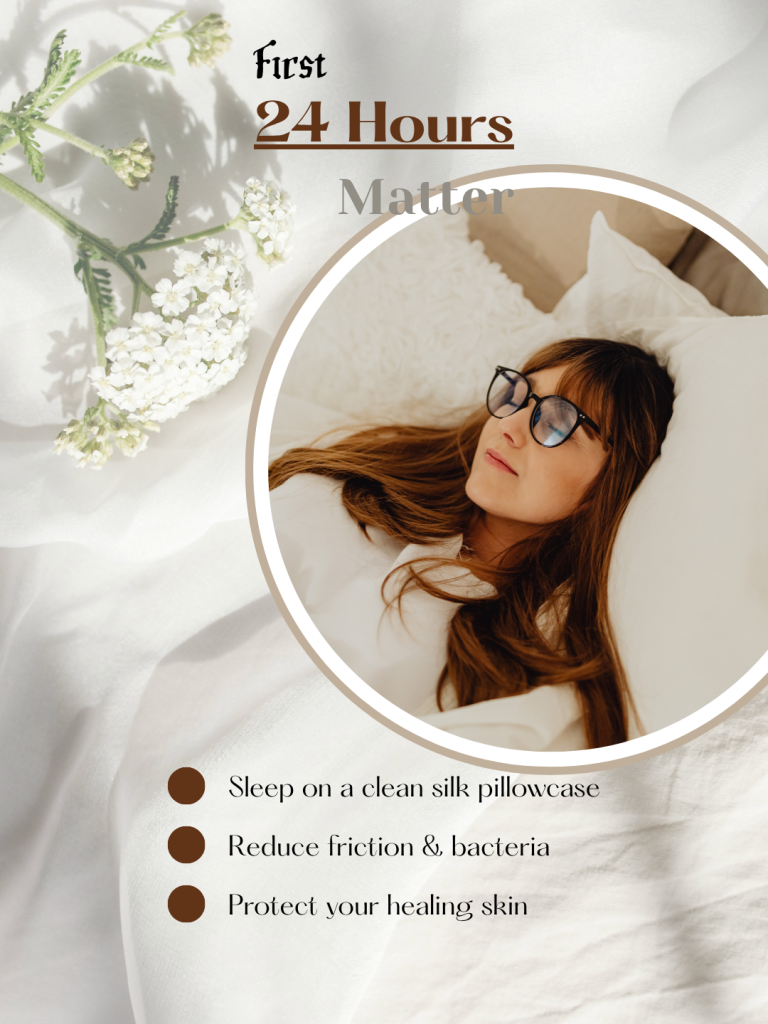 Your pillowcase is a breeding ground for dust mites and residual hair products. Before your treatment, put a fresh, clean silk or bamboo pillowcase on your bed. We also recommend sleeping on your back with your head slightly elevated. This helps reduce the swelling (edema) that is common the morning after a session.